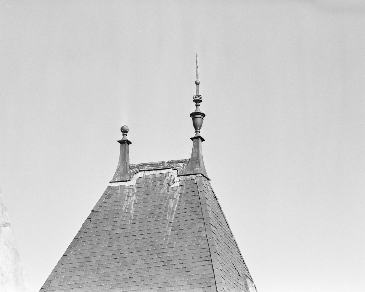 Logis prieural, tour d'escalier est, toiture.Immatriculation