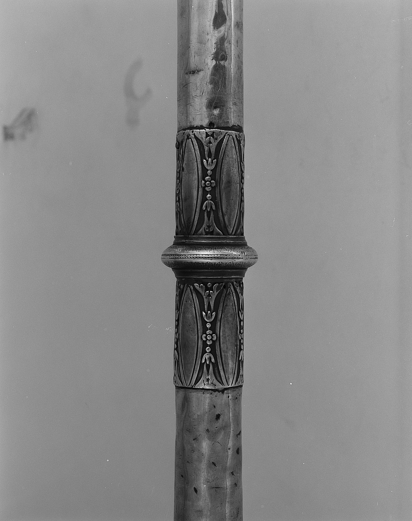 Croix de procession - Détail du motif de la hampe.Immatriculation