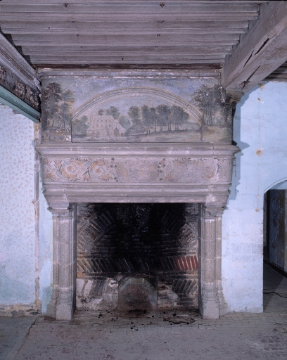 Logis, rez-de-chaussée surélevé, 2ème chambre, cheminée, état avant restaurationImmatriculation