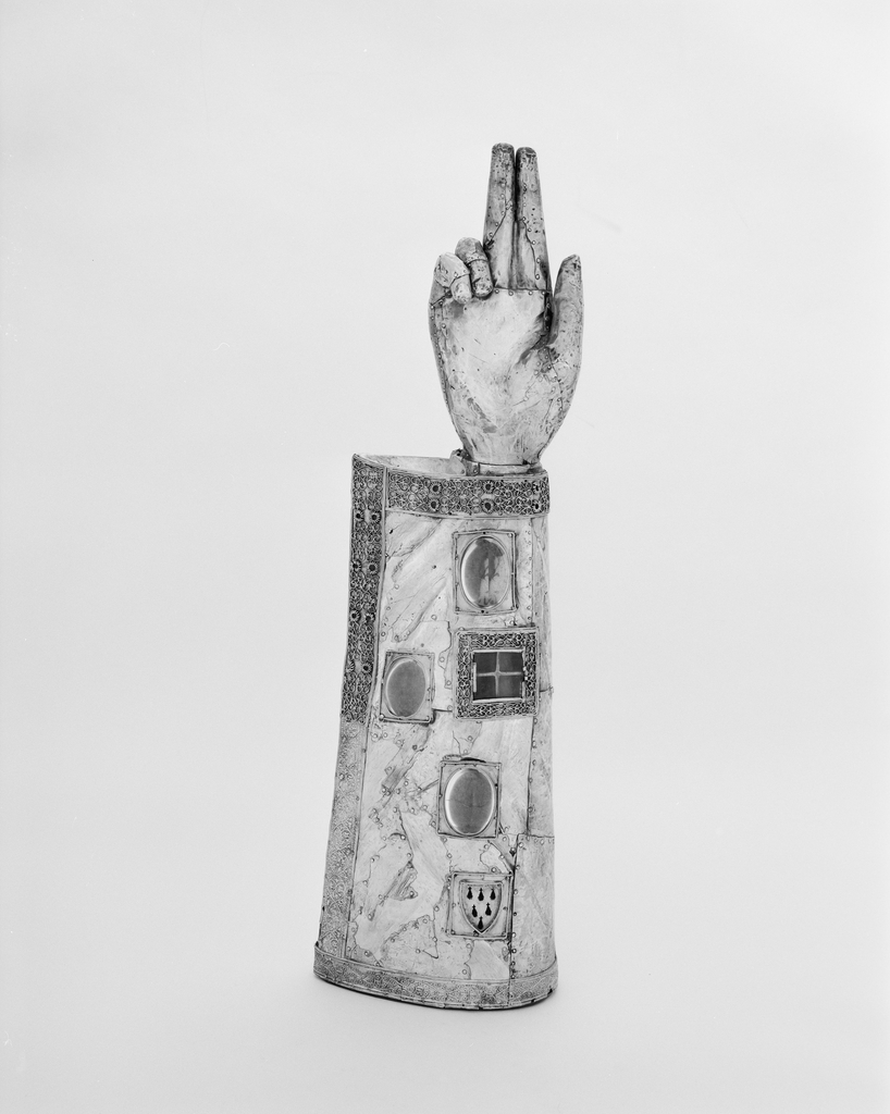 Reliquaire morphologique (bras-reliquaire), de saint Gildas, abbaye de bénédictins Saint-Gildas, de bénédictins de la congrégation de Saint-Maur, de soeurs de la charité de Saint-Louis (Saint-Gildas-de-Rhuys),