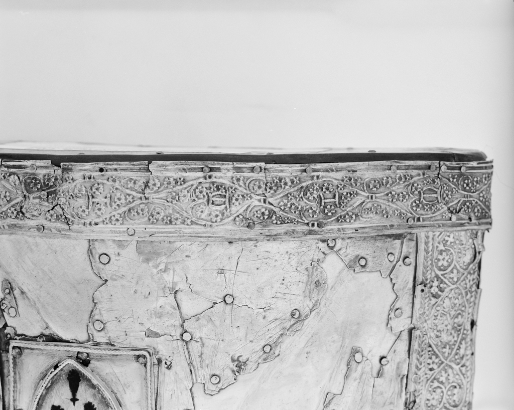 Détail de la bordure inférieure, face antérieure.Immatriculation