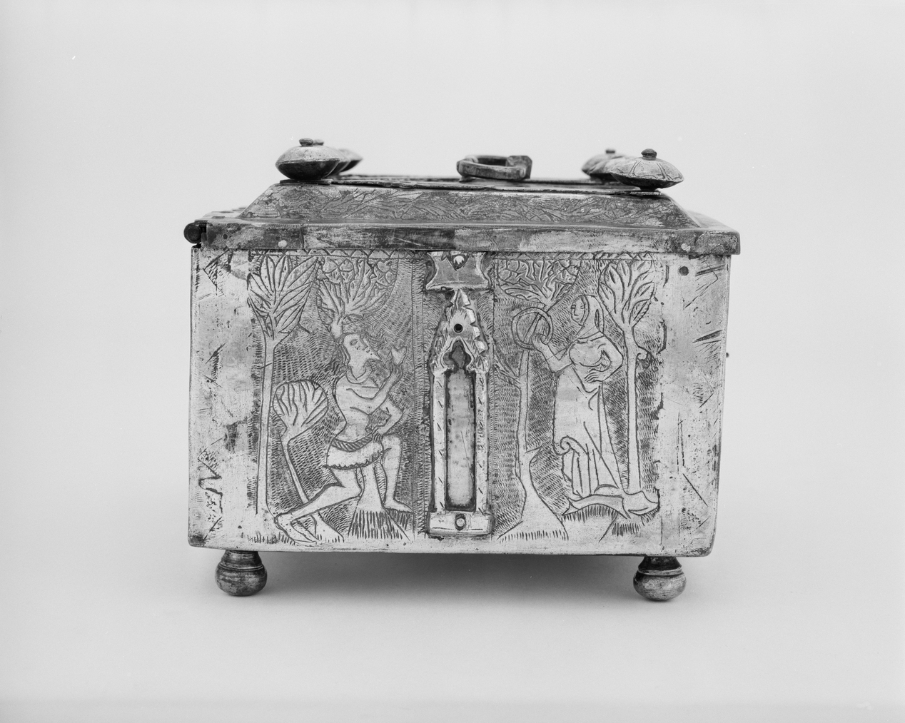 Coffret de mariage, vue générale du petit côté droit. (Fonds thématique orfèvrerie de Basse-Bretagne).Immatriculation