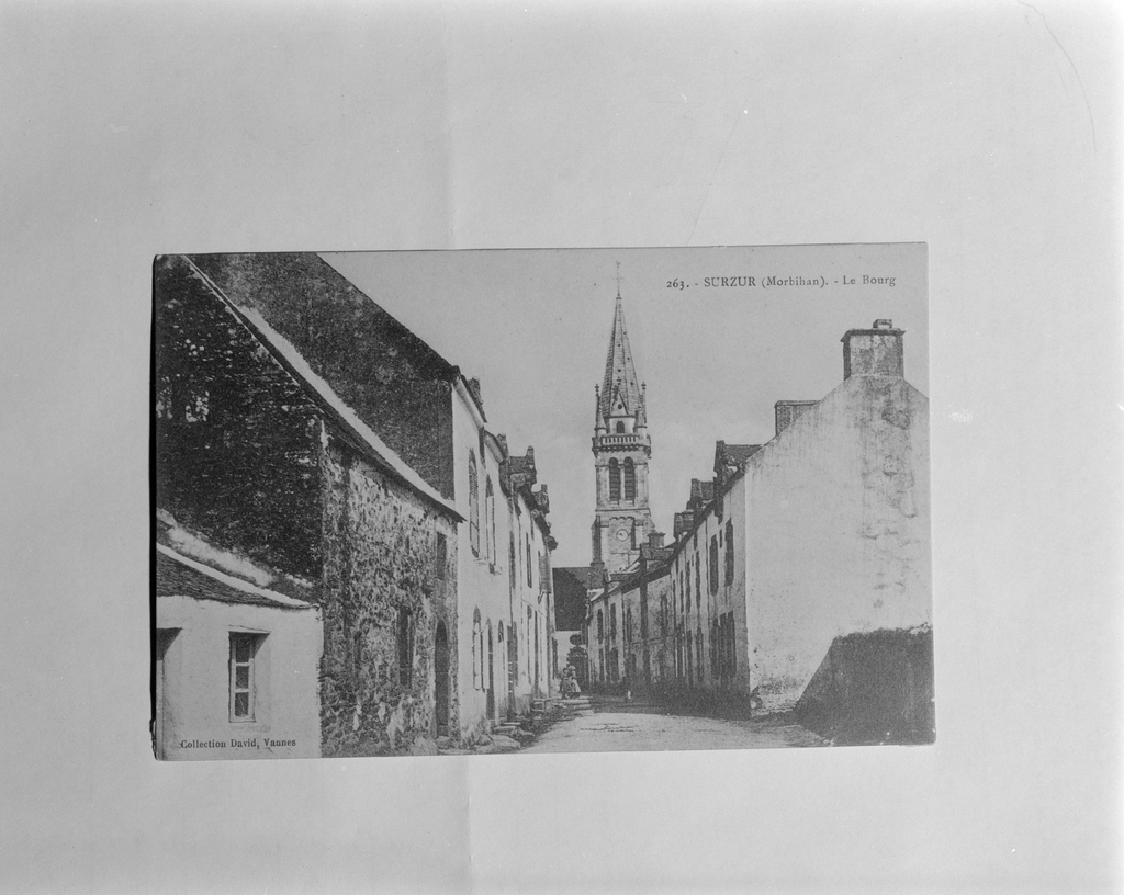 Grande Rue, partie sud : vue prise du sud. Carte postale ancienne coll. David (A.D. Morbihan).Immatriculation