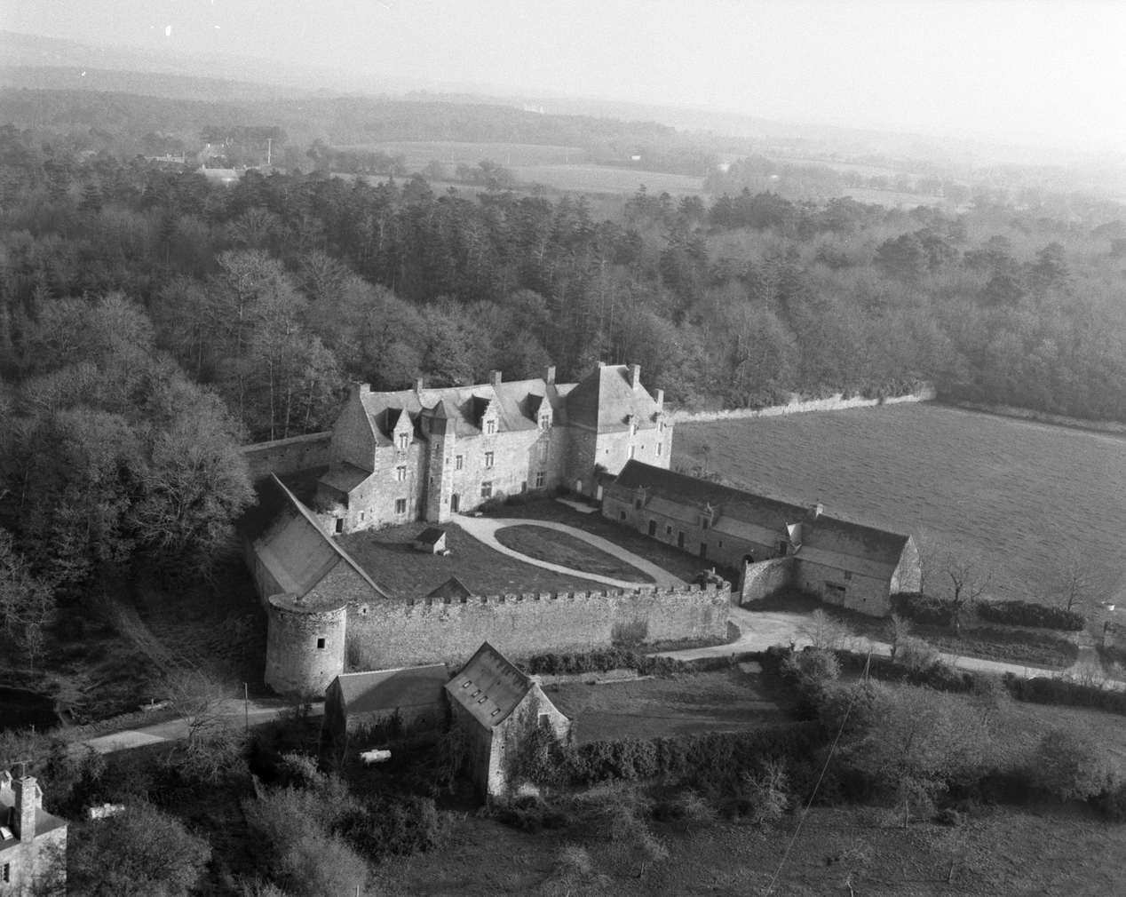 Manoir, vue aérienne rapprochée sud.Immatriculation