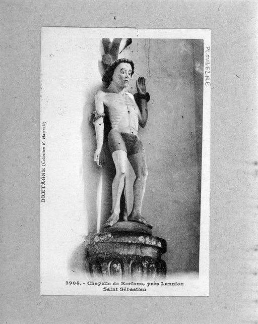 Ploubezre, chapelle de Kerfons : statue de saint Sébastien (carte postale ancienne ; Bretagne, collection E. Hamonic)Immatriculation