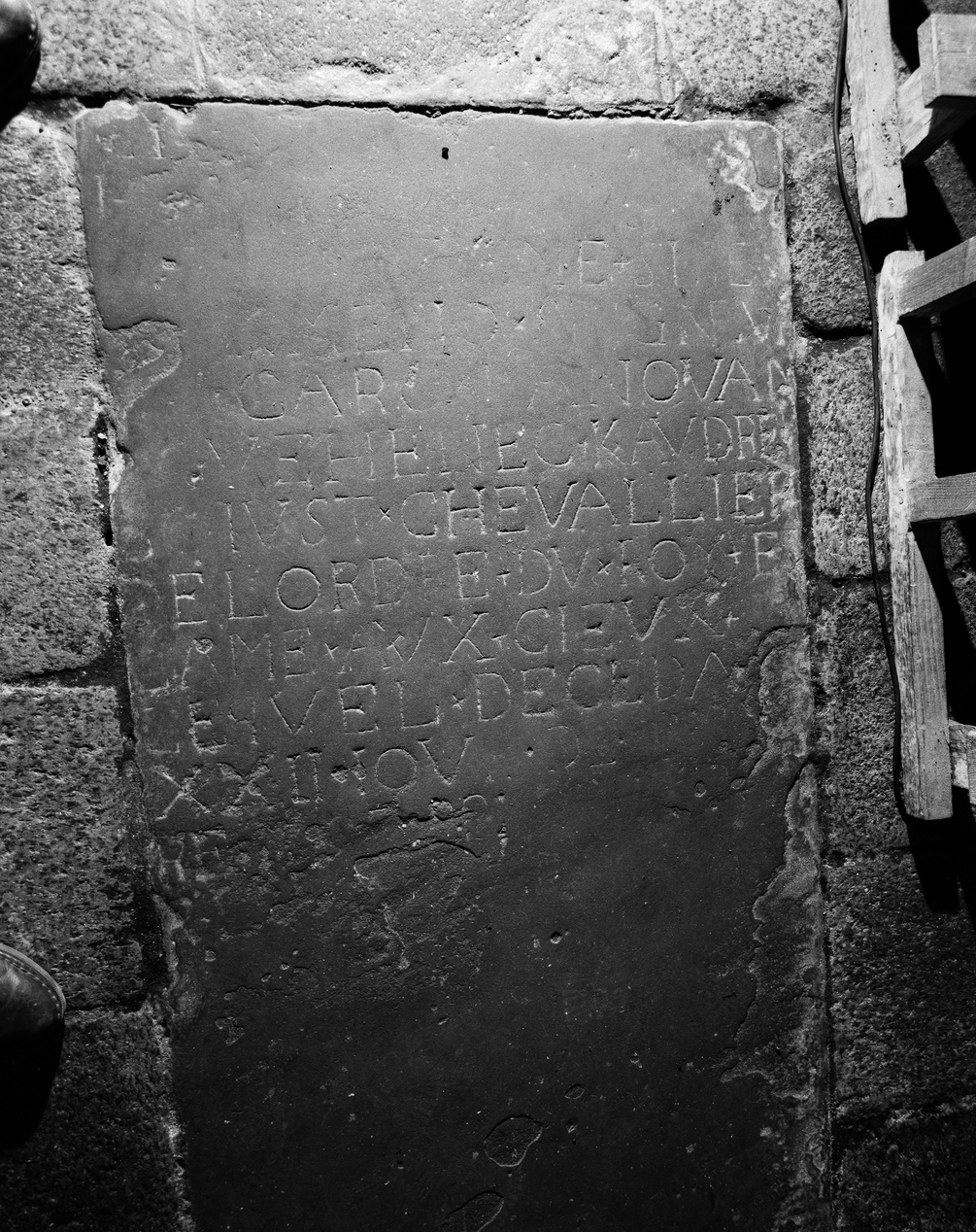 Plate-tombe, de René de Kerméno du Garo, chapelle Notre-Dame de Béléan-ou-de-Bethléem (Ploeren),