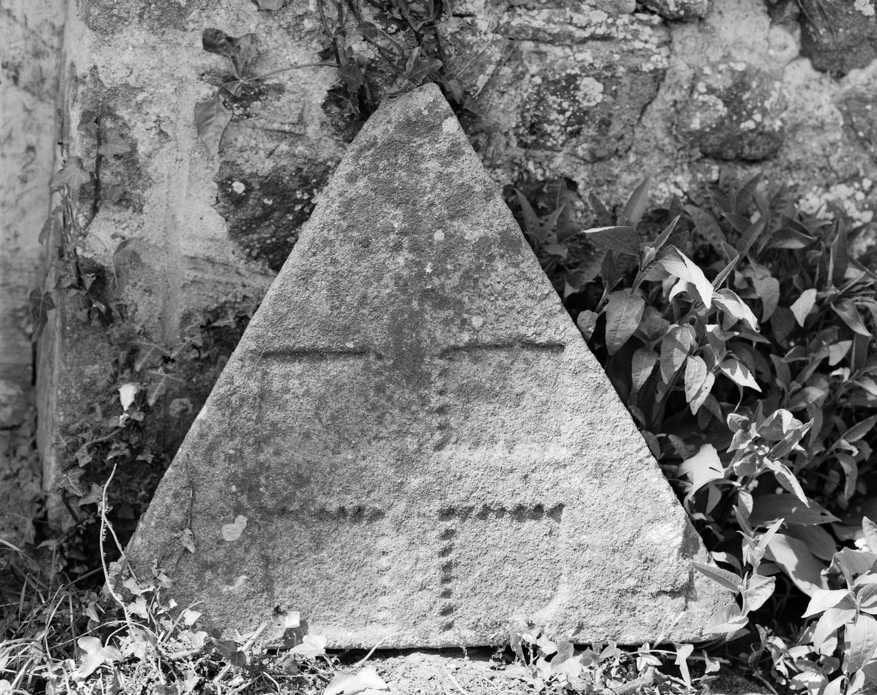 Ancienne lucarne de l'élévation antérieure, déposée, fronton.Immatriculation