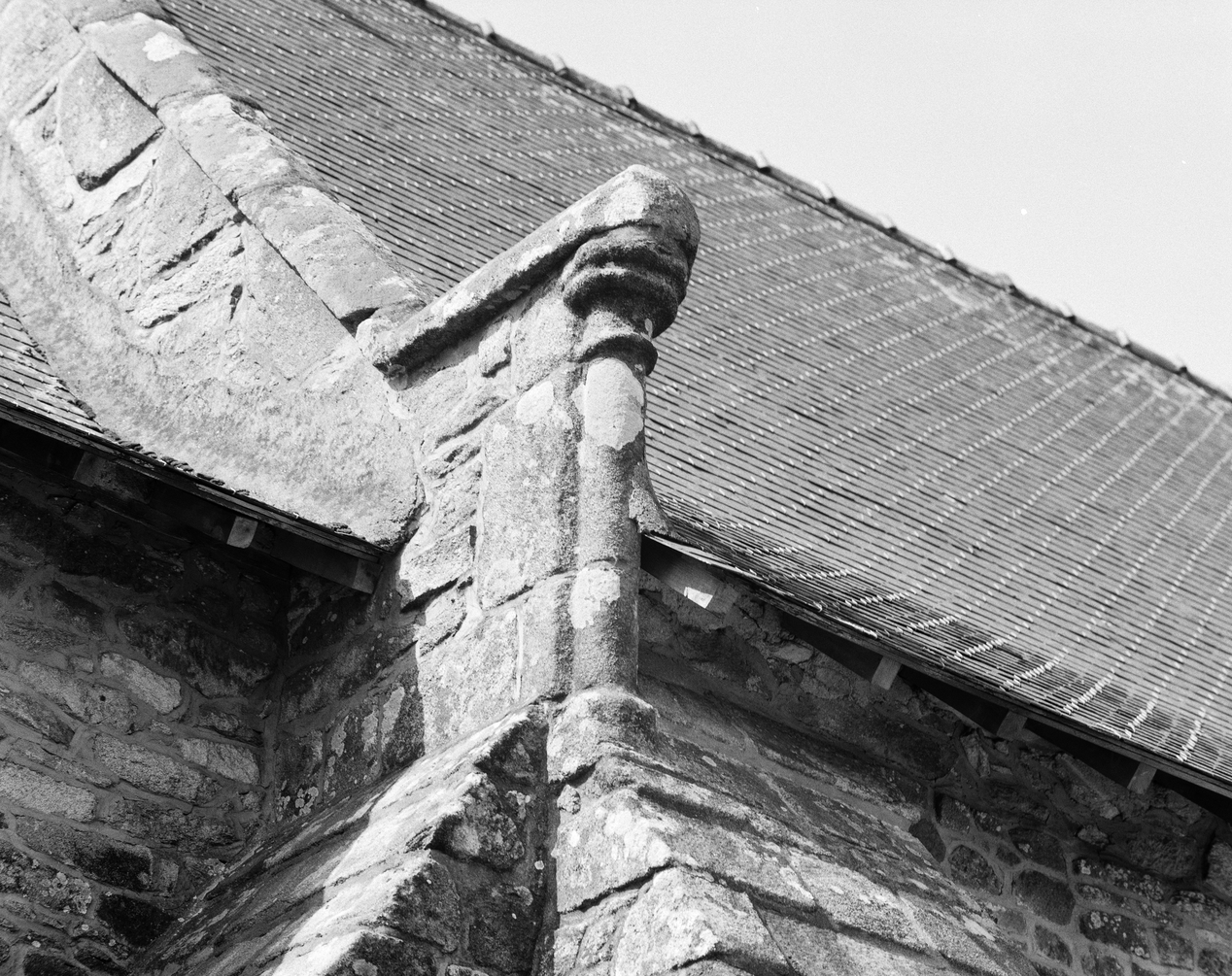 Chapelle de la Vierge, pignon est, rampant nord, détail des pierres d'assise à colonnette.Immatriculation