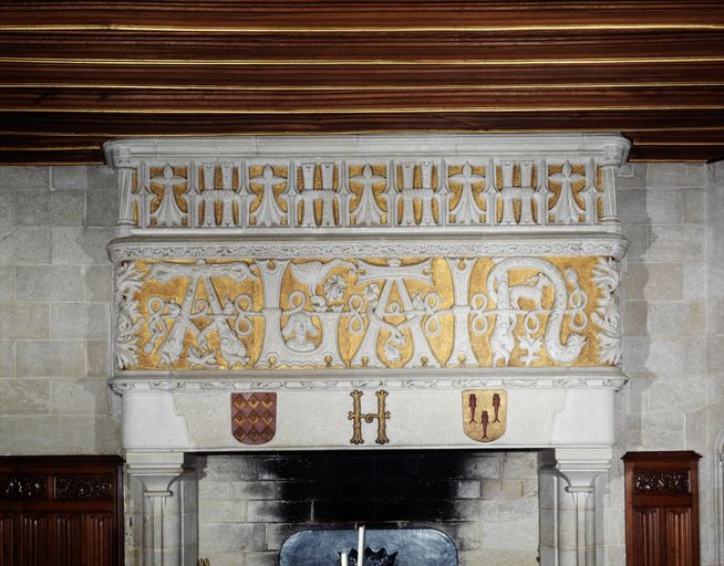 Logis, rez-de-chaussée, salle à manger : décor du linteauImmatriculation