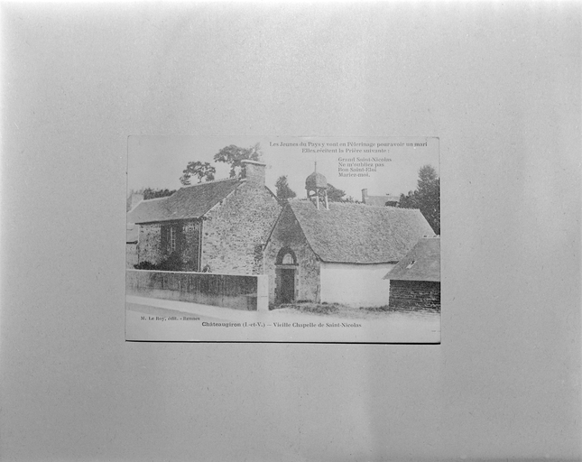 Carte postale ancienne - Châteaugiron (I.-et-V.) - Vieille chapelle de Saint Nicolas.Immatriculation