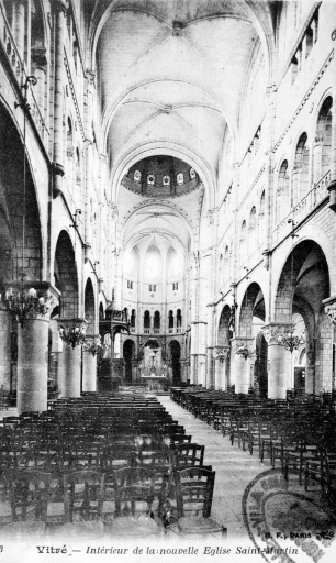 Intérieur : vue générale vers le choeur (Carte postale ancienne, AD35 : 6Fi)Immatriculation
