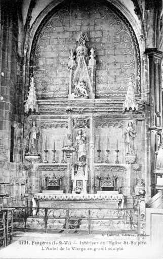 Intérieur, chapelle Nord, autel : vue générale (Carte postale ancienne, AD35 : 6Fi)Immatriculation