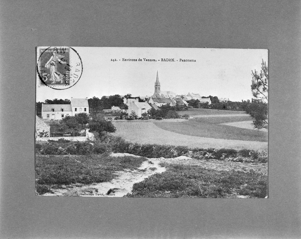 Vue de situation prise du sud-ouest. Carte postale ancienne, vers 1900. Coll. David. (Doc. A.D. Morbihan).Immatriculation