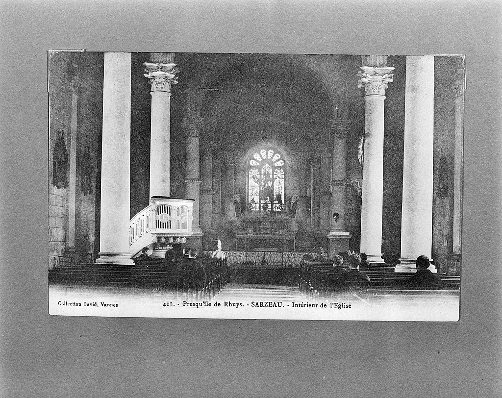 Intérieur de l'église. Carte postale ancienne, coll. David, Vannes. (Doc. A.D. Morbihan).Immatriculation