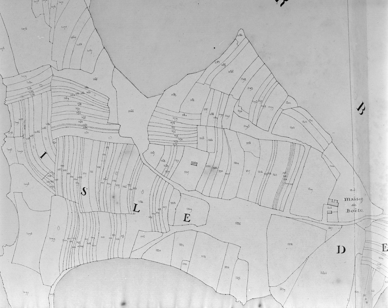 Ile de Boëdic, chapelle, extrait cadastral 1809, section E2, parcelle 1226.Immatriculation
