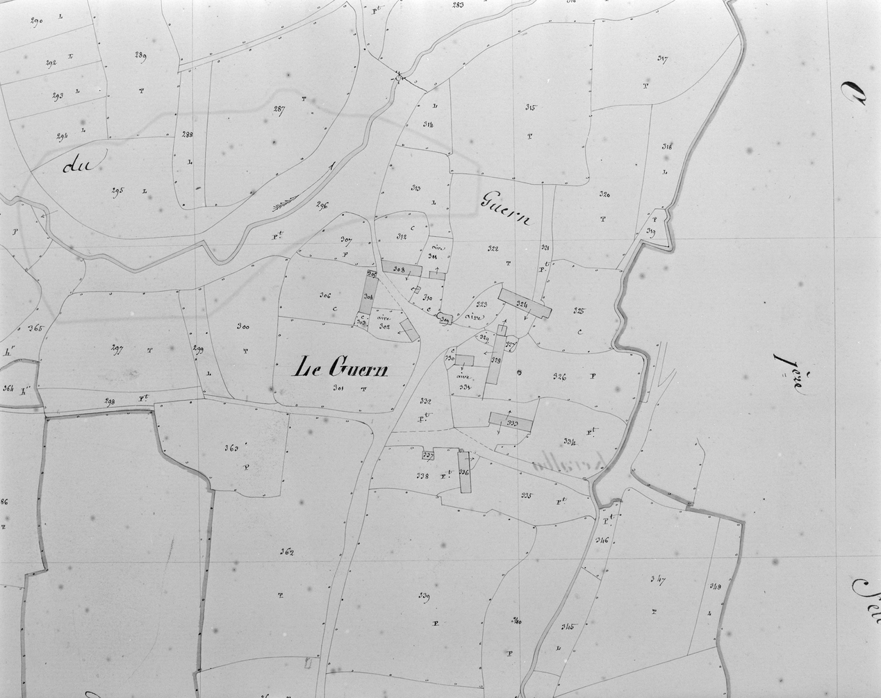 Le Guern, maisons-fermes, plan cadastral 1851, section B3.Immatriculation