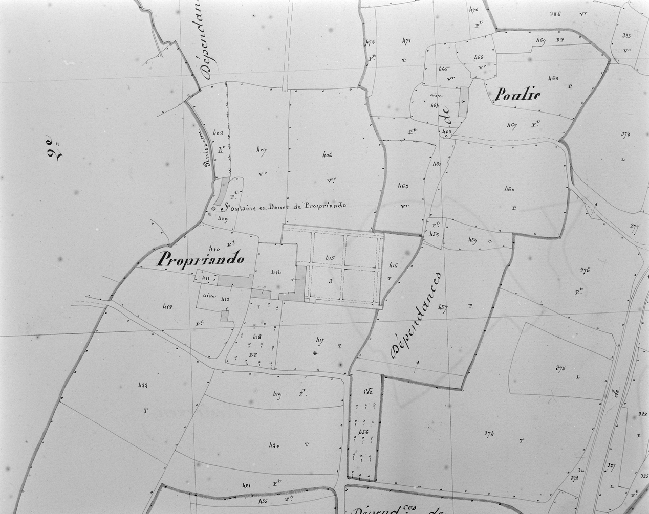 Propriendo, plan cadastral 1851, section E2.Immatriculation