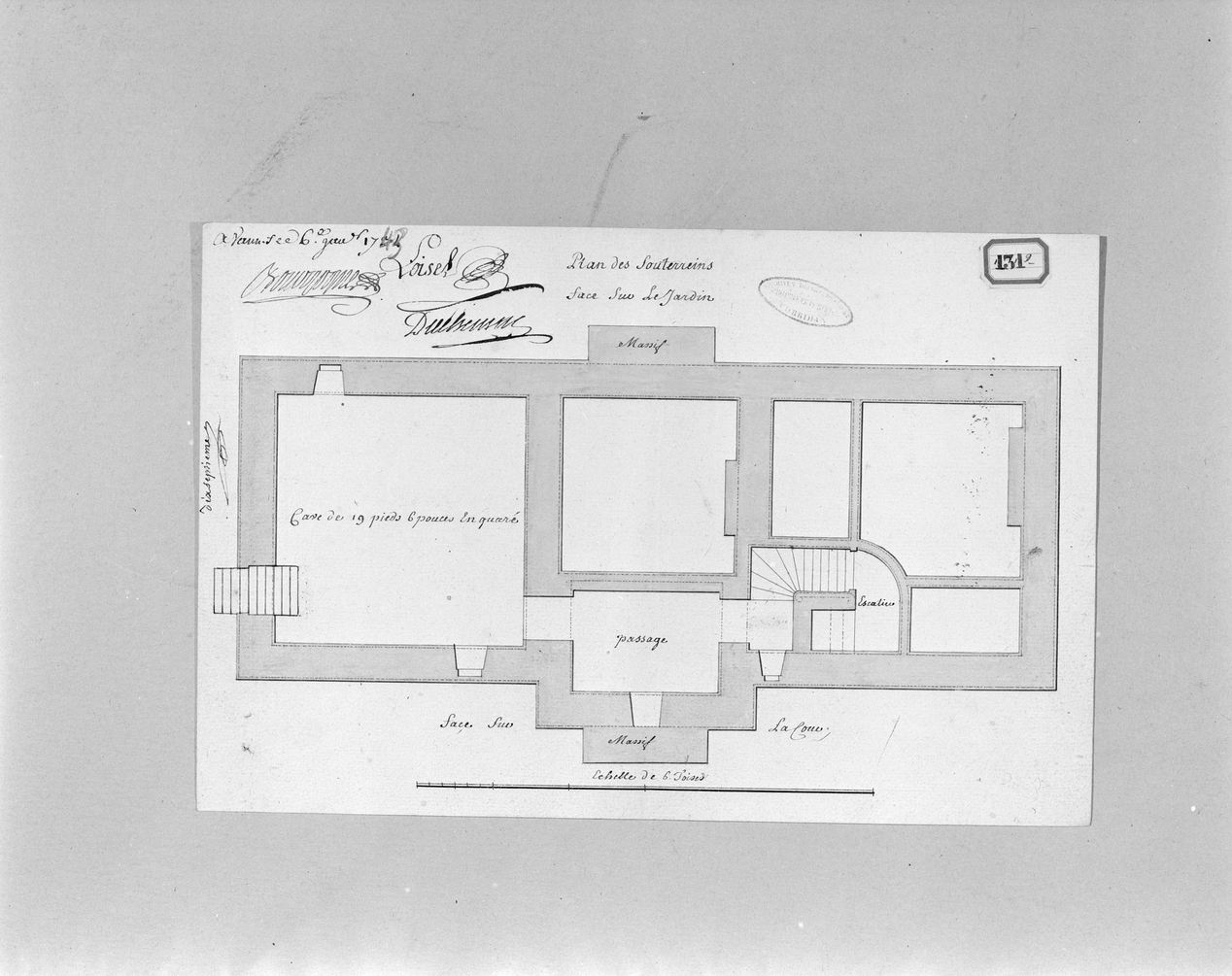Logis abbatial, plan du sous-sol, projet, 1743 (Doc. A.D. Morbihan).Immatriculation