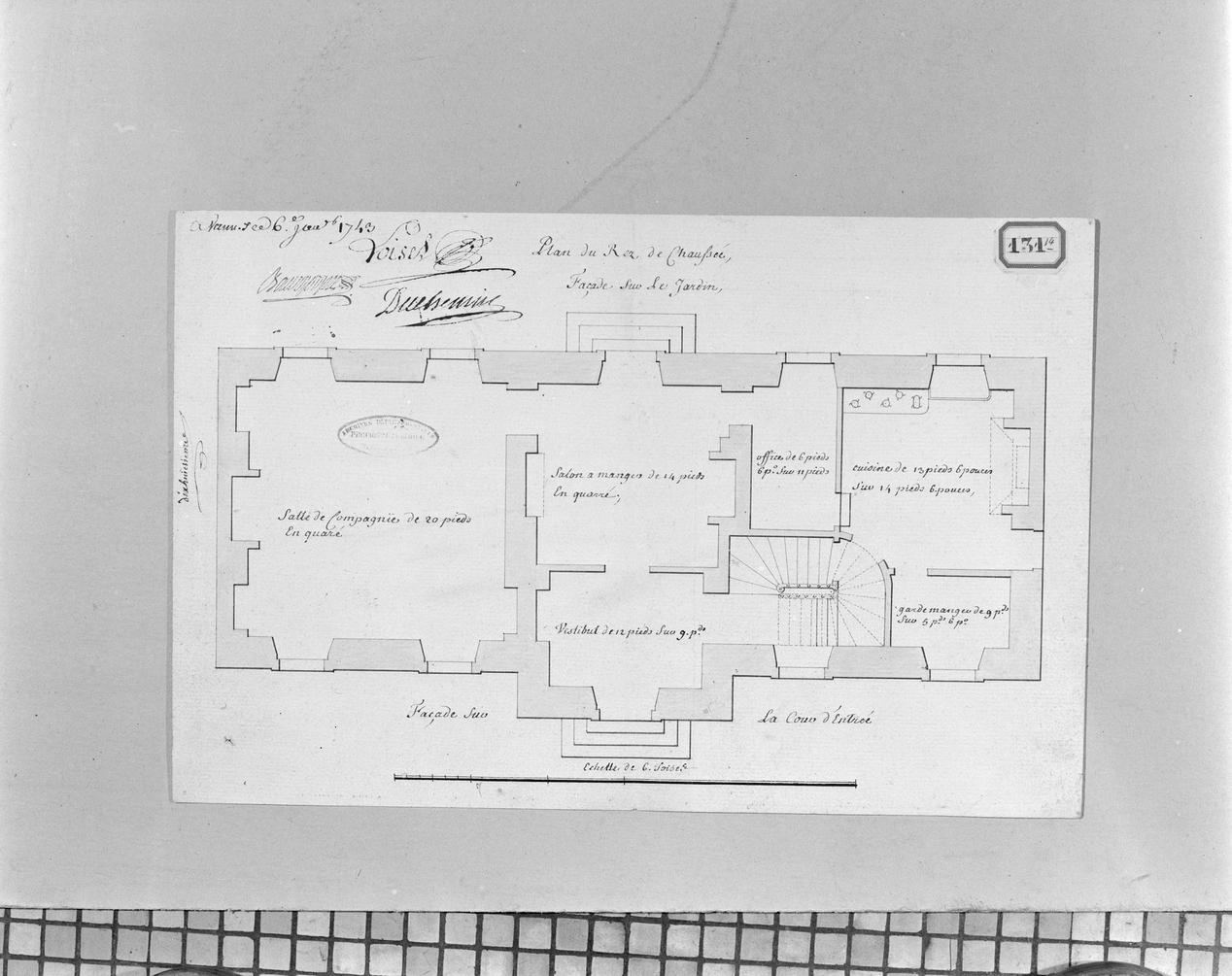 Plan du rez-de-chaussée, projet, 1743 (Doc. A.D. Morbihan).Immatriculation
