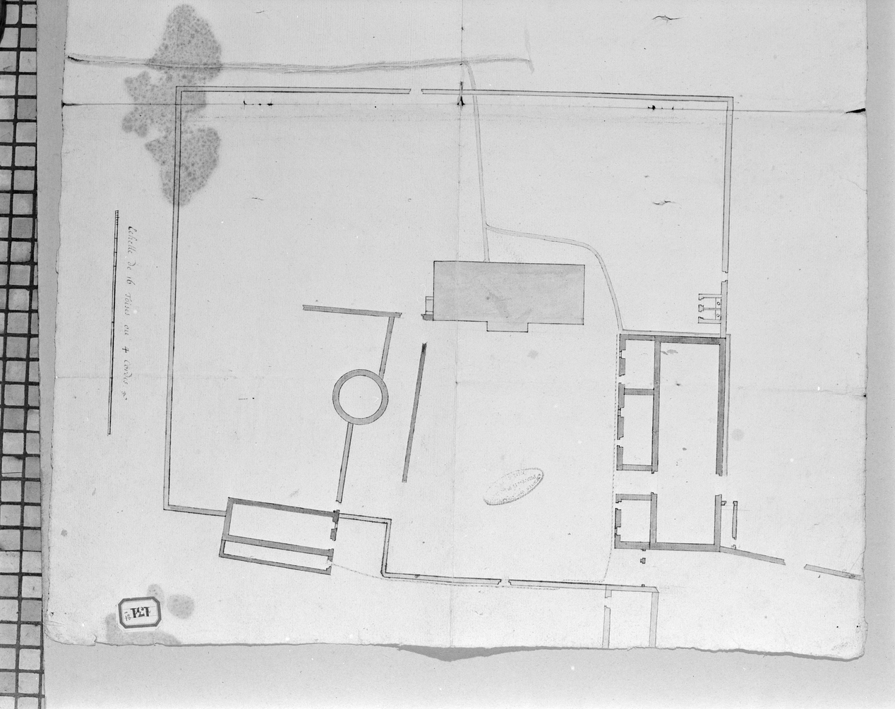 Logis abbatial, plan masse, projet de construction, 1742 (Doc. A.D. Morbihan).Immatriculation