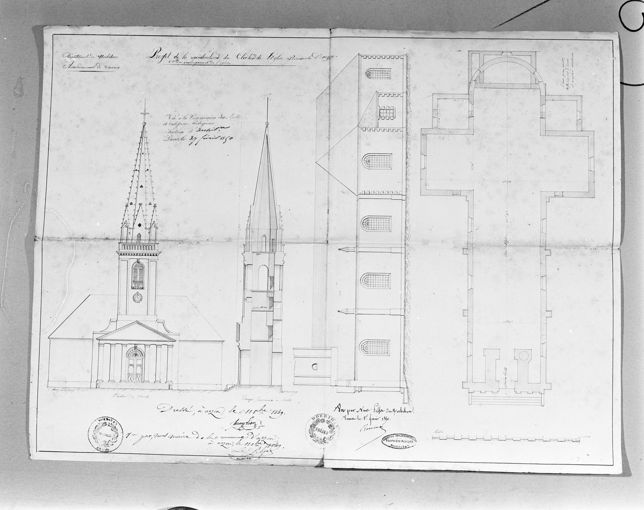 Projet de reconstruction du clocher, 1850 (Doc. A.D. Morbihan).Immatriculation