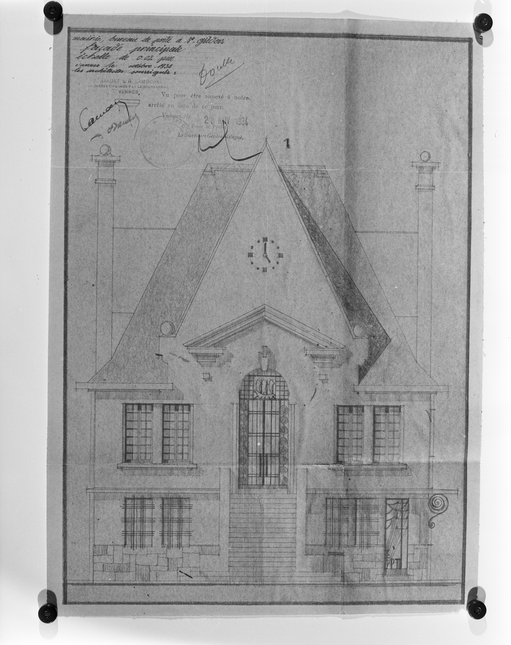 Mairie, élévation antérieure, par Bardet et Lamourec, 1932.Immatriculation