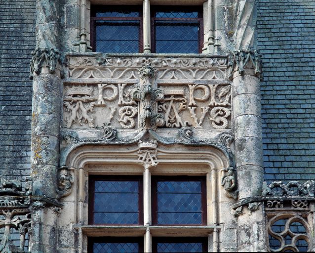 Logis, élévation sur cour, 7e lucarne à partir du sud : décor du devant de lucarneImmatriculation