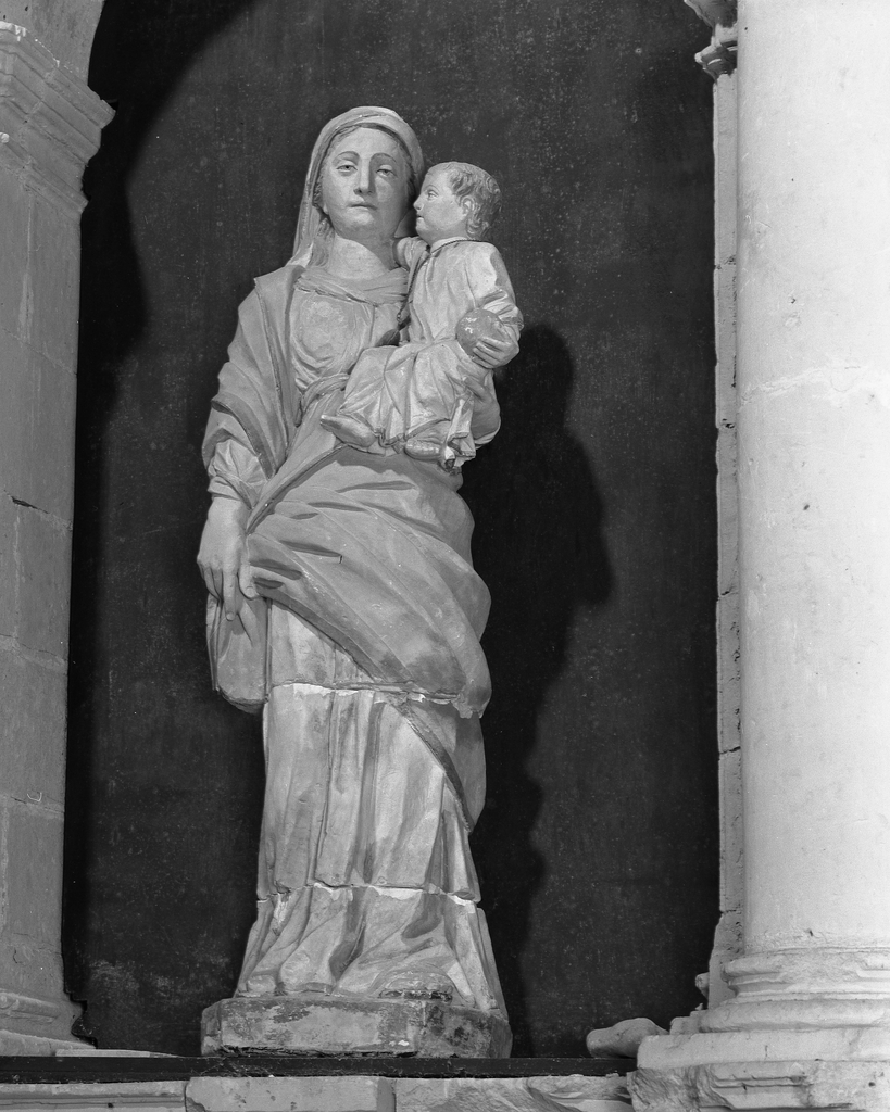 Statue (petite nature) : Vierge à l'enfant, abbaye de bénédictins Saint-Gildas, de bénédictins de la congrégation de Saint-Maur, de soeurs de la charité de Saint-Louis (Saint-Gildas-de-Rhuys),