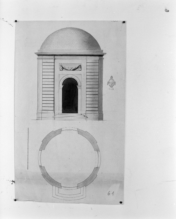 Pavillon nord (non réalisé). Elévation et plan (plan n°61), coll. Part.Immatriculation