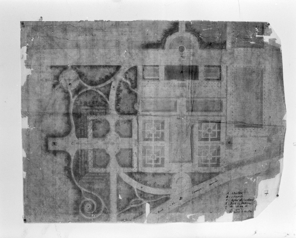 Plan d'une partie des jardins et du château de Kerlevenan par A. Caristie, vers 1827-1829 (plan n°7), coll. part.Immatriculation