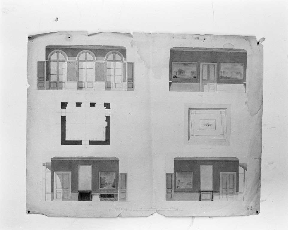 Grand salon, projet de décor. Epoque Restauration (plan n°42), coll. Part.Immatriculation