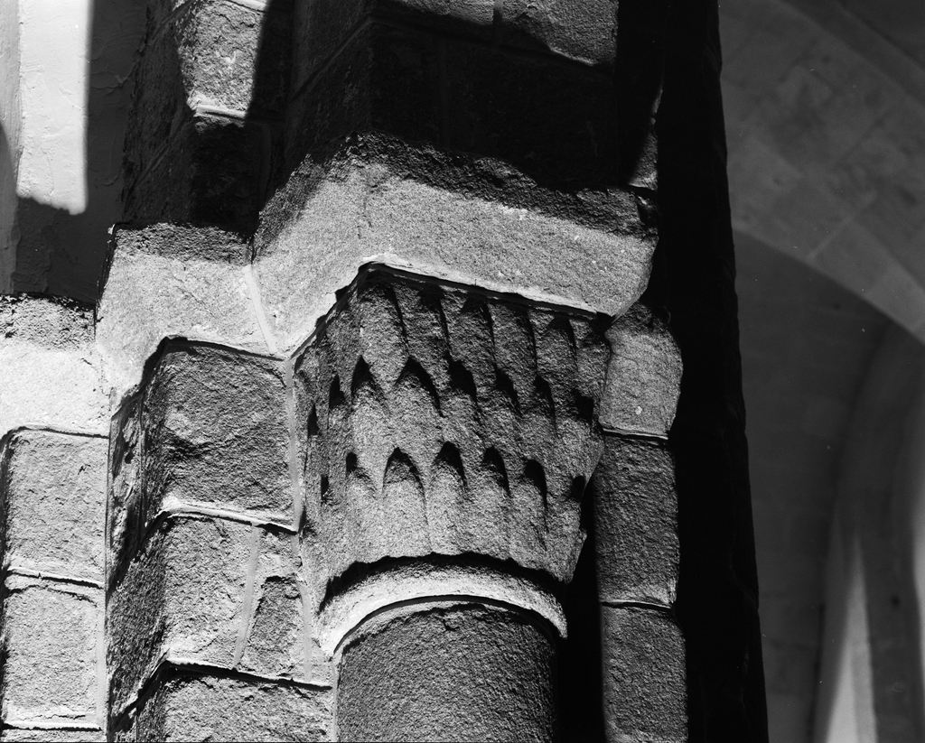 Chapiteaux (32), bases (16), abbaye de bénédictins Saint-Gildas, de bénédictins de la congrégation de Saint-Maur, de soeurs de la charité de Saint-Louis (Saint-Gildas-de-Rhuys),