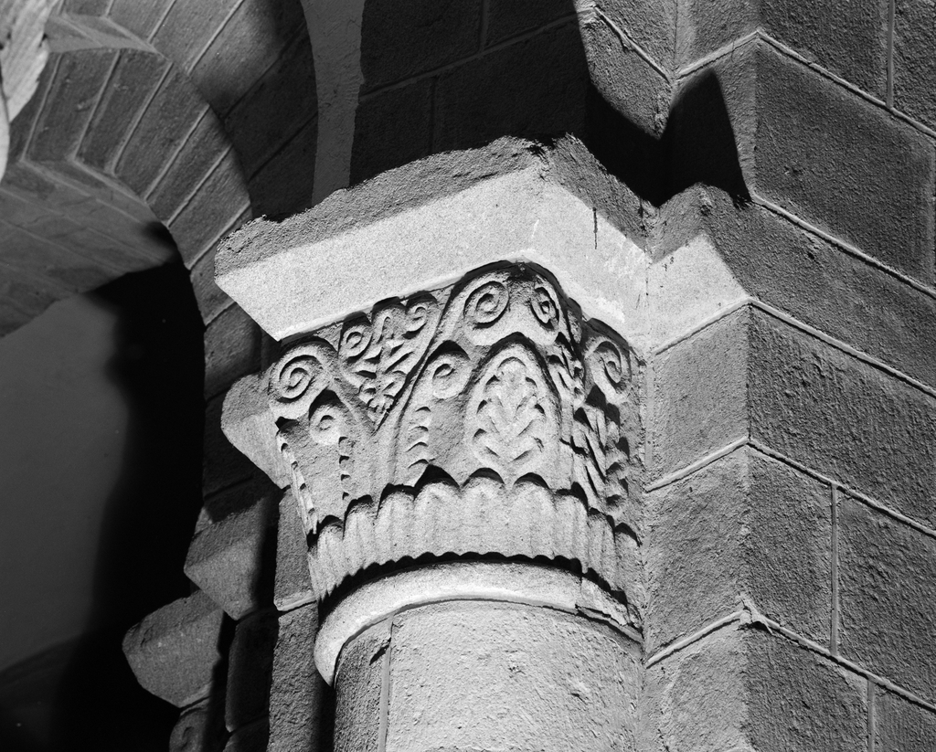 Chapiteaux (32), bases (16), abbaye de bénédictins Saint-Gildas, de bénédictins de la congrégation de Saint-Maur, de soeurs de la charité de Saint-Louis (Saint-Gildas-de-Rhuys),