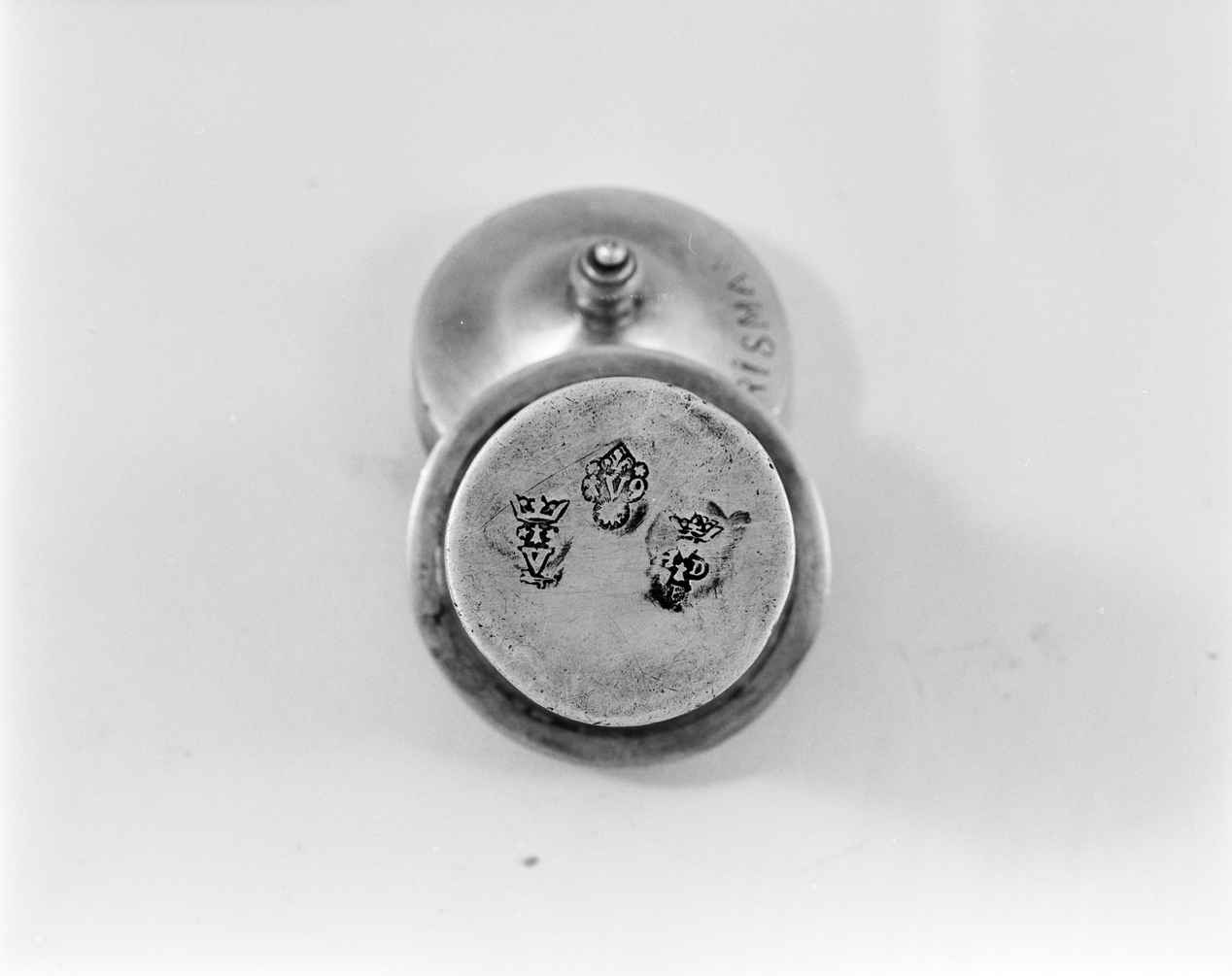 Boîte à saint crème, boîte à huile, vue générale du poinçon.Immatriculation