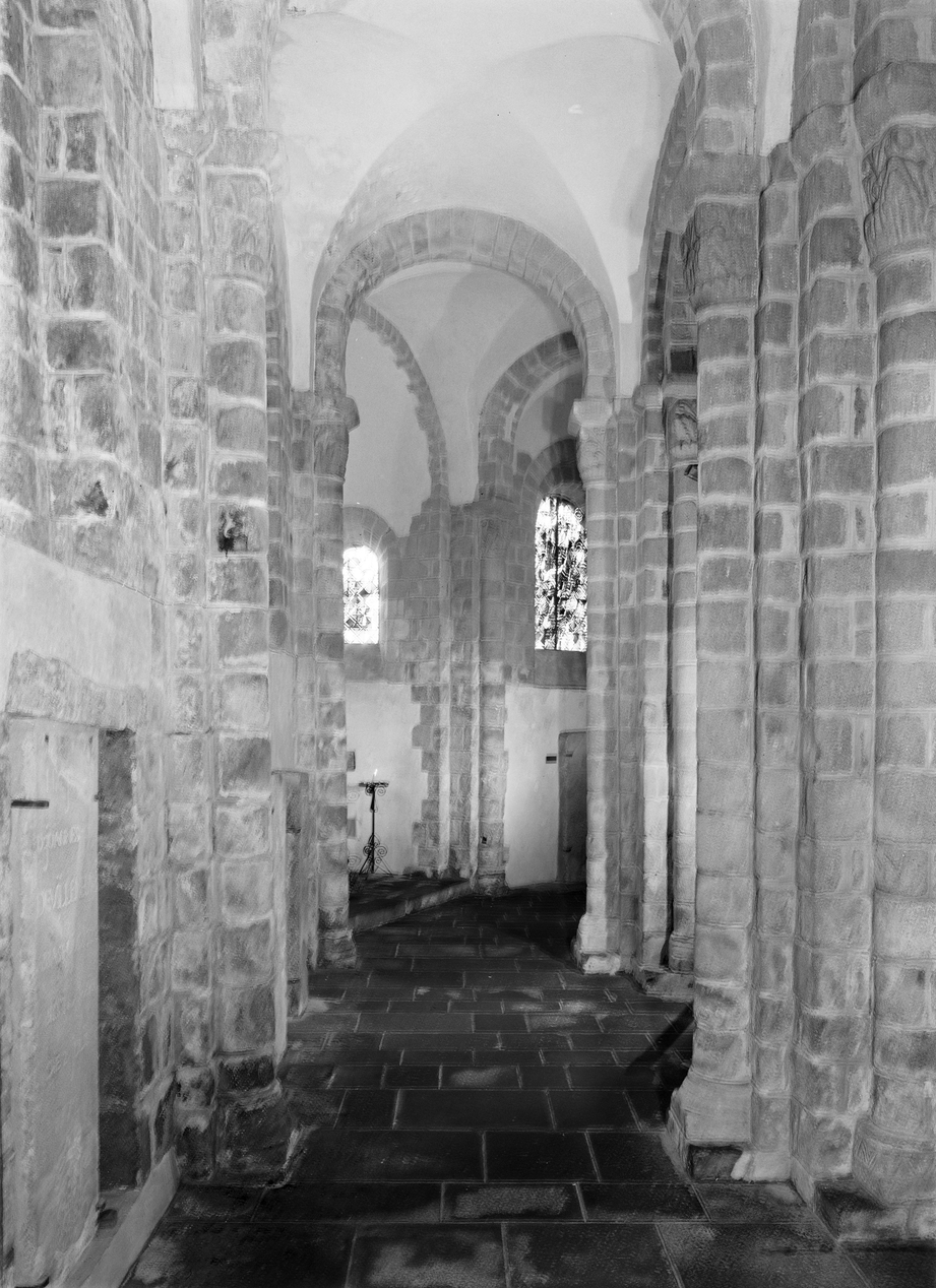 Vue intérieure : déambulatoire, côté nord.Immatriculation