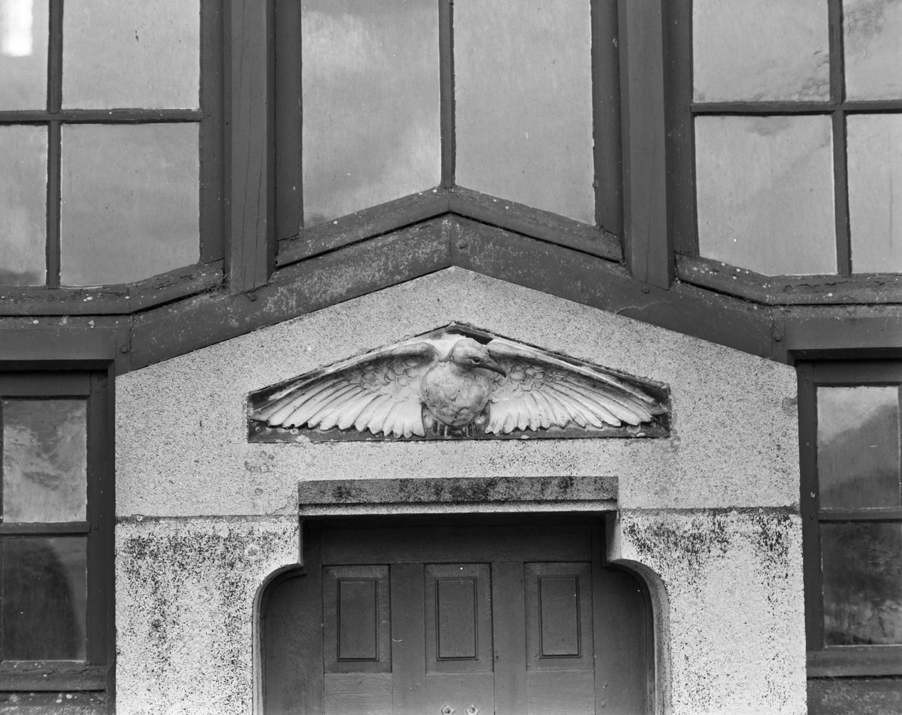 Elévation nord, fronton de la porte.Immatriculation