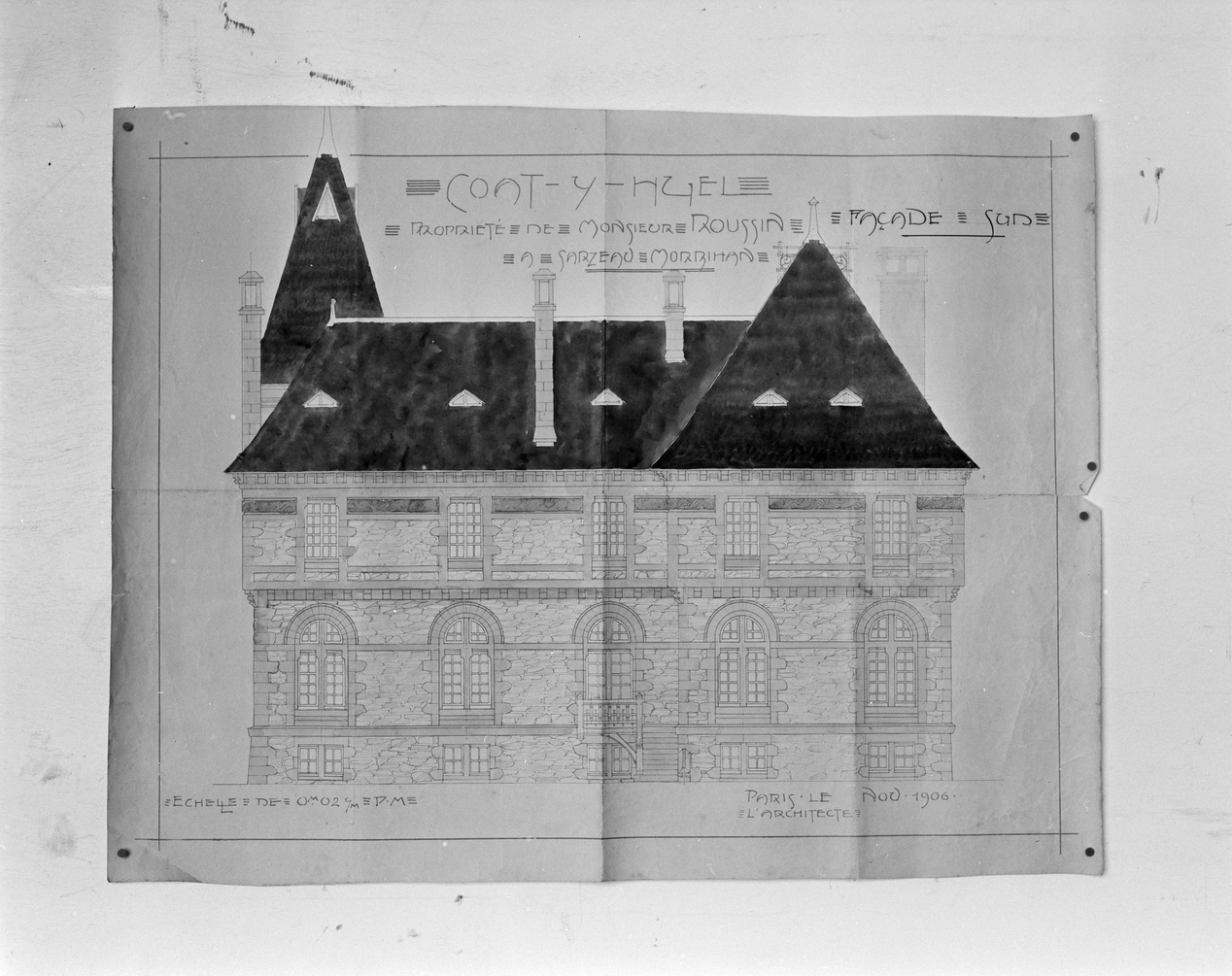 Elévation sud, projet daté 1906.Immatriculation