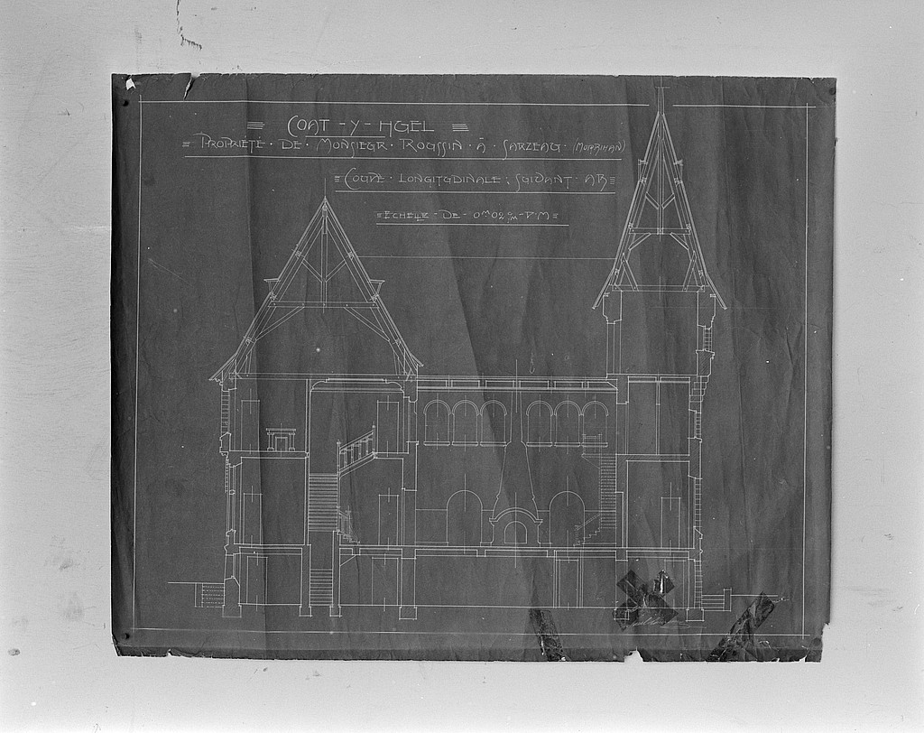 Coupe longitudinale sur le hall.Immatriculation
