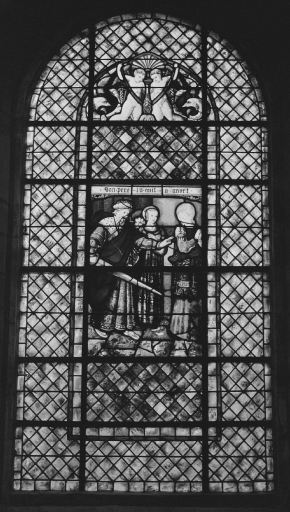 Ensemble de 3 verrière à personnages : sainte Barbe (baies 6, 8, 10) (La Ferrière fusionnée en Plémet en 2016),