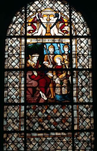Ensemble de 3 verrière à personnages : sainte Barbe (baies 6, 8, 10) (La Ferrière fusionnée en Plémet en 2016),