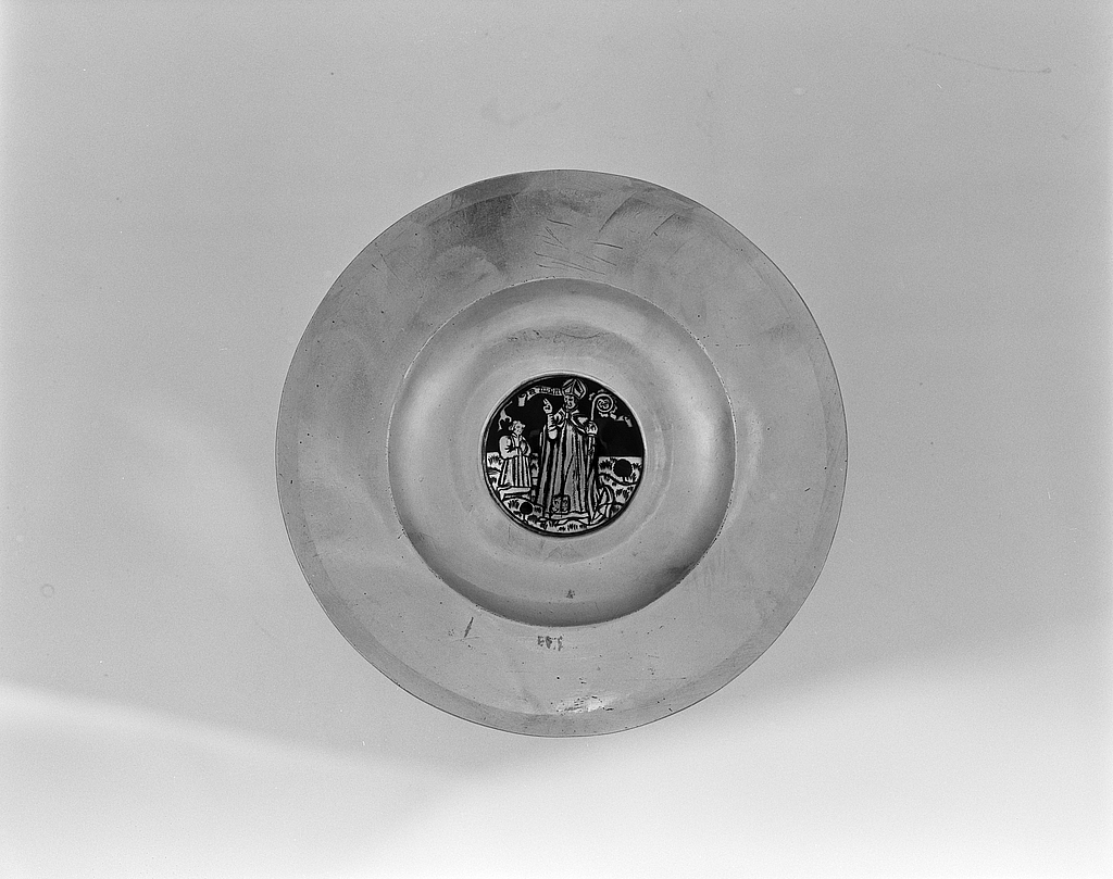 Patène, vue générale de la face ornée.Immatriculation