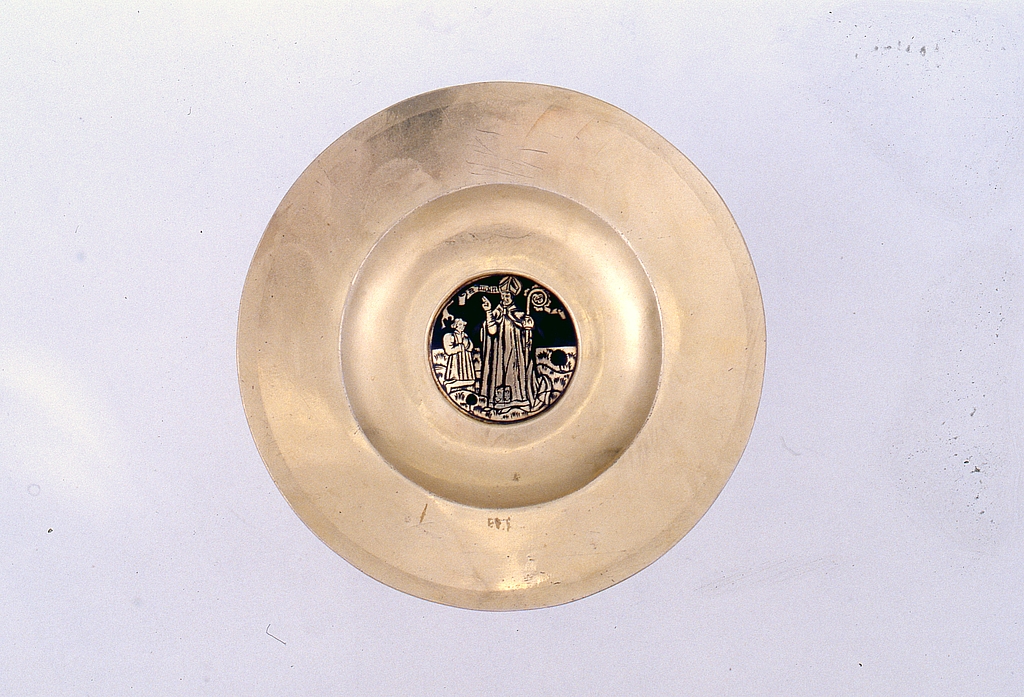 Patène, vue générale de la face ornée.Immatriculation