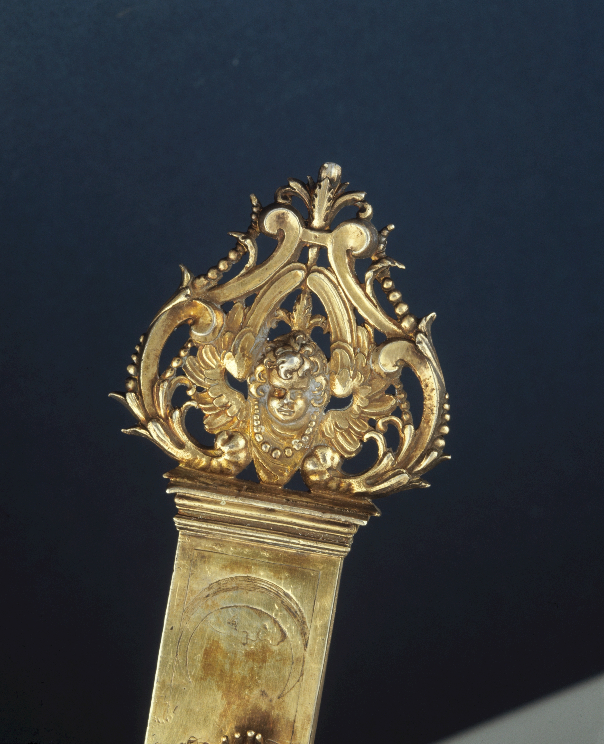 Croix de procession, détail d'un fleuron. (Fonds thématique orfèvrerie de Basse-Bretagne (56), vol. 3).Immatriculation