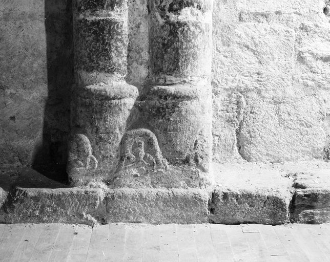 Église, choeur, mur nord : base de colonnettes (état en 1994)Immatriculation