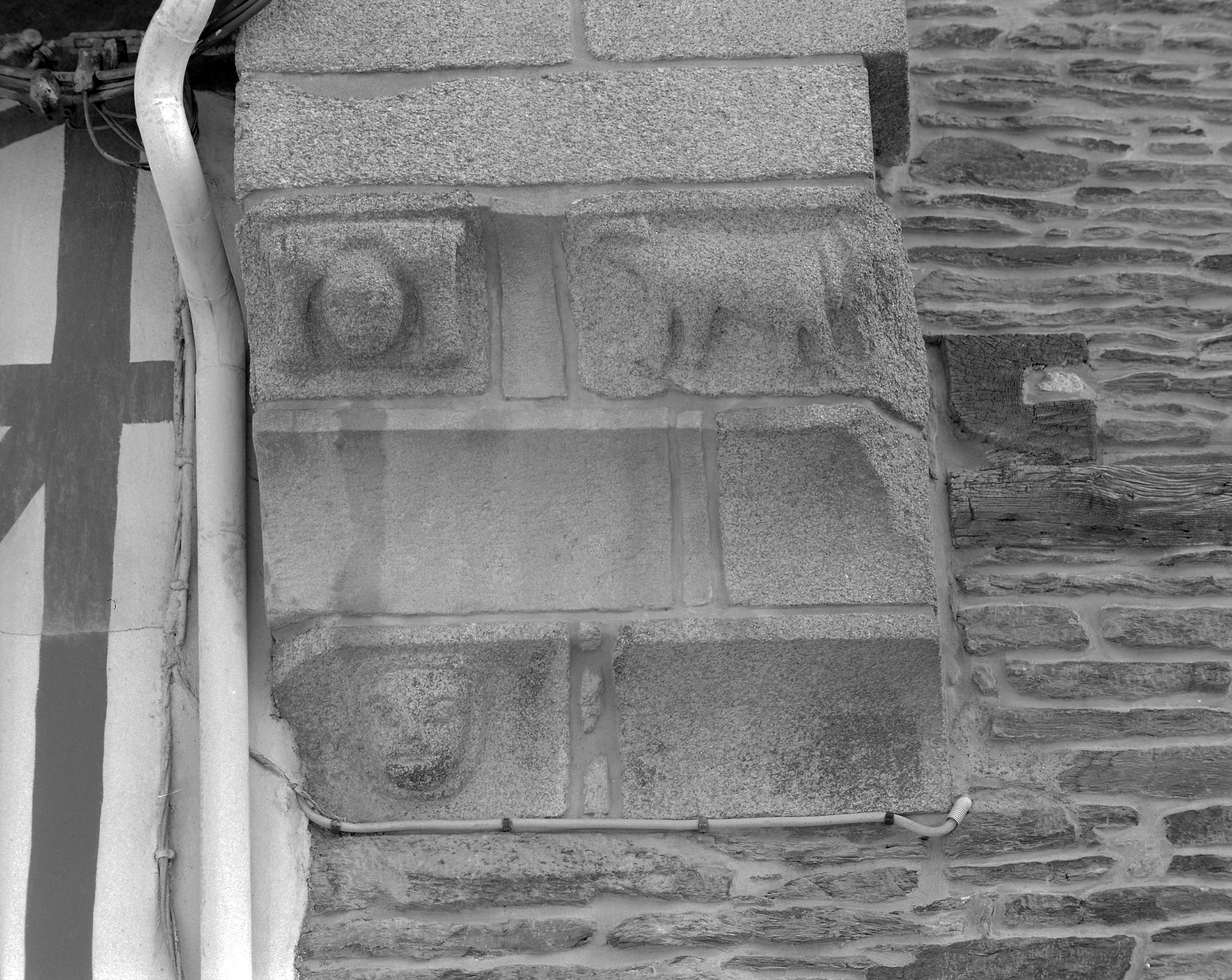 Maison, élévation sur rue, partie supérieure : décor sculpté dans le granite (état en 1994)Immatriculation