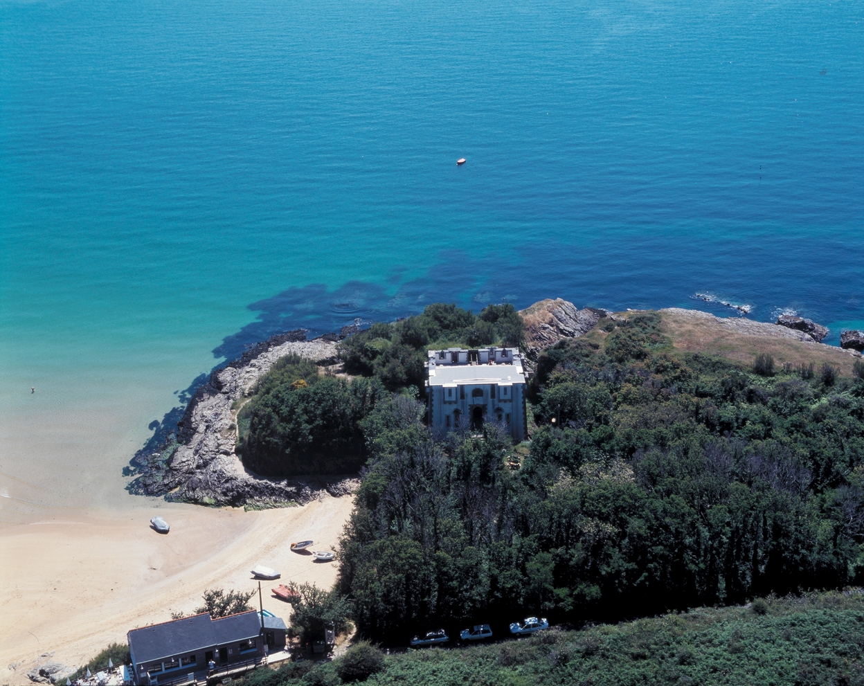 Locmaria, Port Andro, tour crénelée, vue aérienne depuis l'ouest.Immatriculation