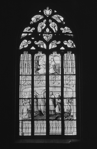 Verrière 4 : rite de consécration. Couronnement de la statue de la ViergeImmatriculation