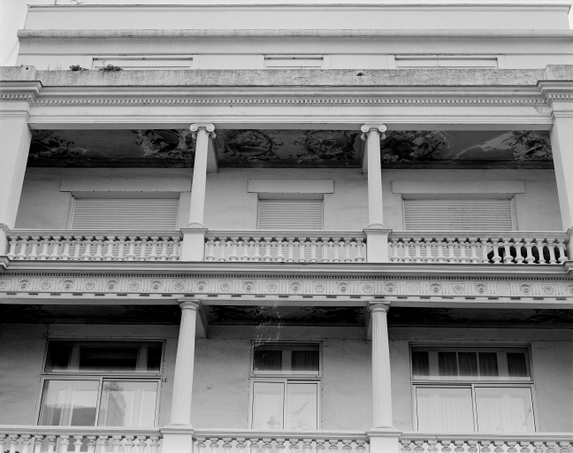 Elévation nord, détail de la loggia avec fresques extérieures.Immatriculation
