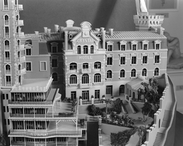 Crystal Hôtel, vue de la partie droite de l'hôtel sur front de mer (maquette d'André Pompanon, Musée de Dinard).Immatriculation