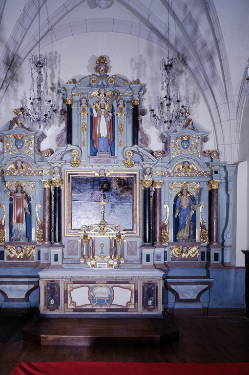 Maître-autel, retable architecturé à niche, vue générale après restauration.Immatriculation